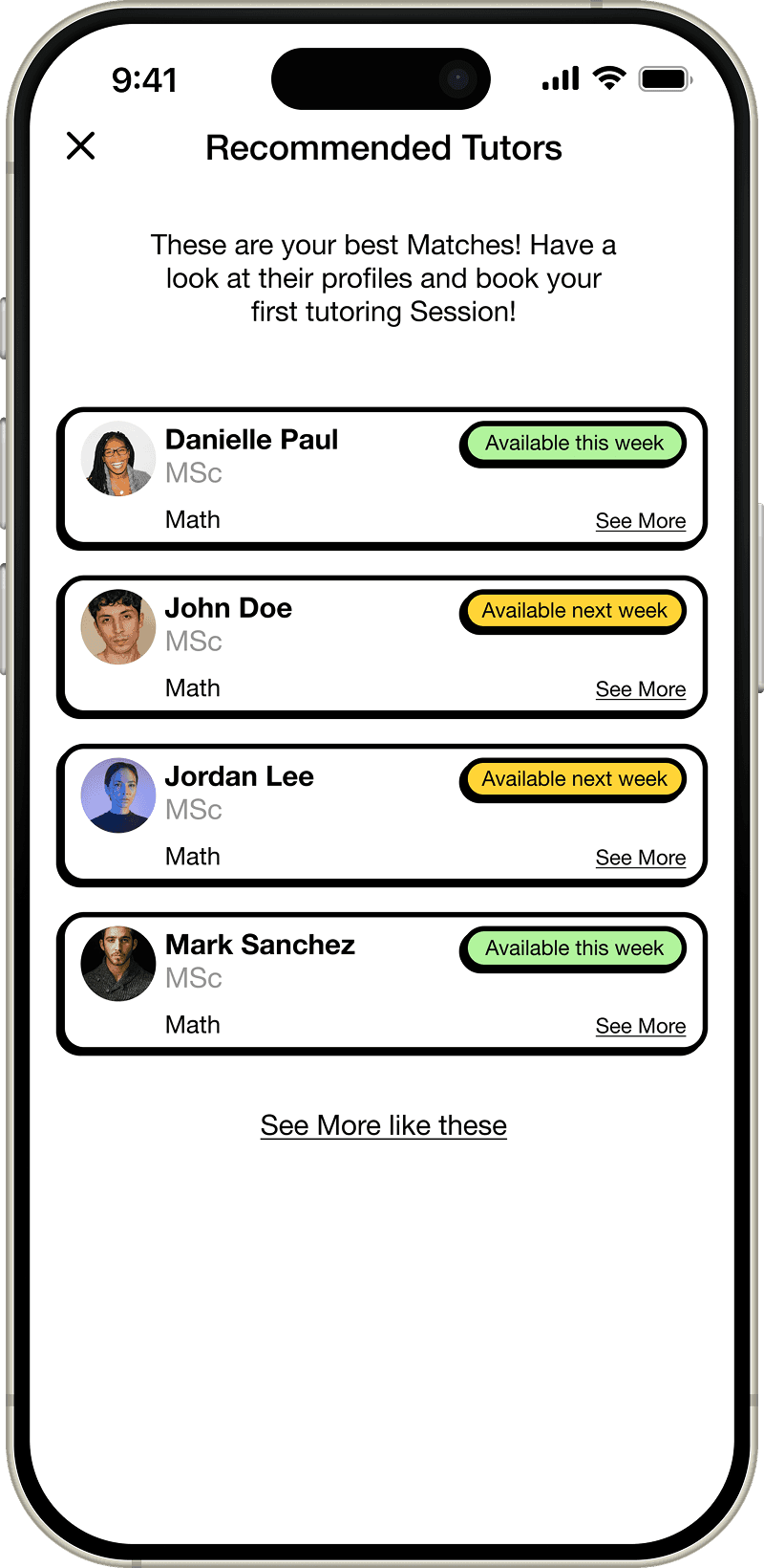 If I were to approach this project again, I would begin by establishing a stronger brand foundation, including voice, tone, and visual direction. Research into comparable applications and insights from user interviews suggested opportunities to introduce a more engaging, gamified experience—such as learning streaks, group learning opportunities, tutor reviews, trust-building systems, AI-assisted features, and a more playful, approachable brand aesthetic.