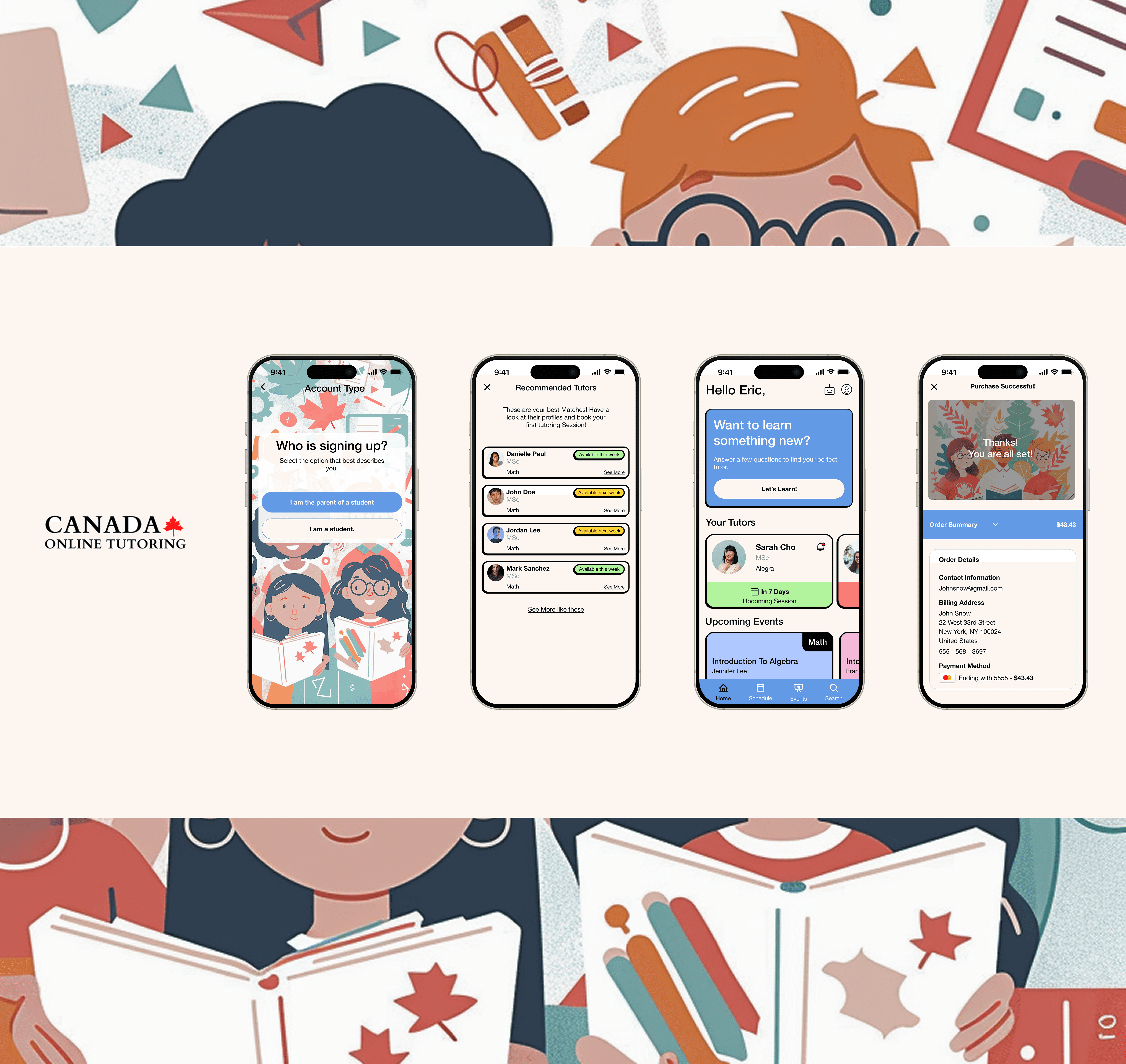 Canada Online Tutoring partnered with me to design an MVP mobile application focused on improving customer satisfaction, increasing retention, and expanding reach through a mobile-first tutoring experience.